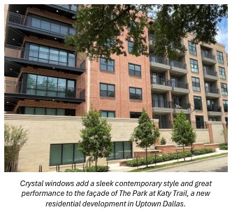 The developer and builder for The Park at Katy Trail is Willow Bridge Property Company, headquartered in Dallas, TX. Crystal supplied its windows directly to Willow Bridge for this project.